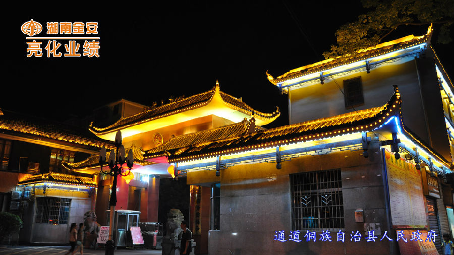 项目实施包括整个通道县城建筑物、广场、公园、绿地、步行街、休闲场所、沿河两岸、周边山体、水景照明、